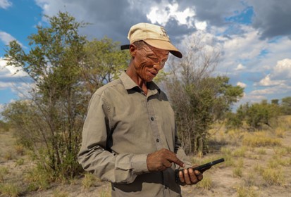 The Nyae Nyae Conservancy in Namibia—In a clearing here on the eastern fringe of the Kalahari Desert, four men intently examine animal tracks snaking through dry yellow grass and leafless thorn bushes. “Wild dogs. Six of them took down an impala 2 days ago and they dragged it,” says /Ui G/Aqo*, a master tracker and member of the Indigenous Ju/’hoansi group that has lived on these lands for millennia.